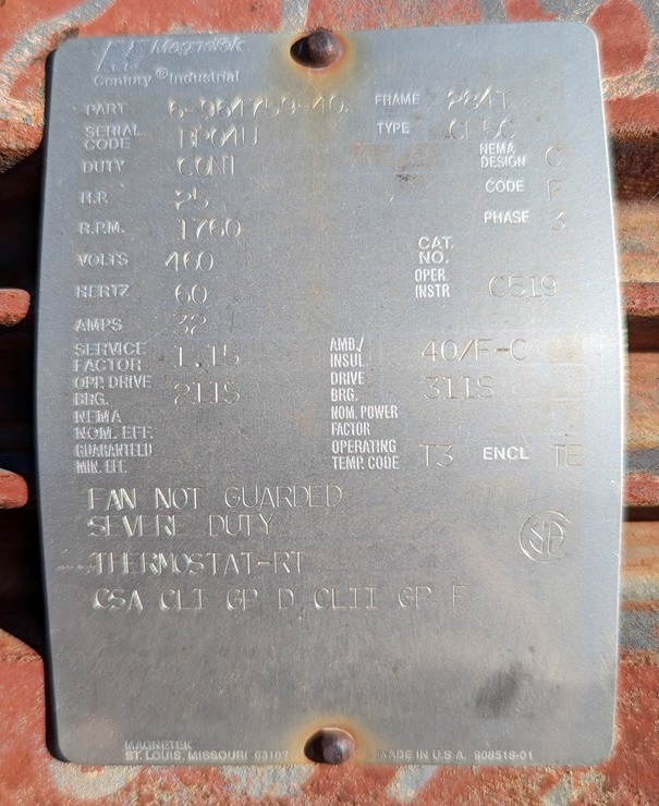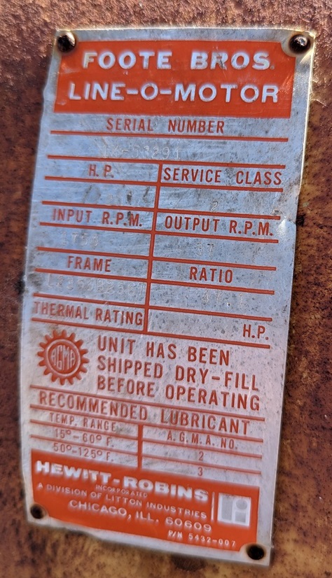 20hp Hewitt-Robins Gearbox Speed Reducer with 25hp Motor, Gearbox is 20hp, 1750 Input RPM, 37 Output RPM, Ratio 47.1, Service Class 2, Frame L2355B2561, Serial Number 1X-53291, Motor is 25hp, MagneTek, 1760 RPM, 460 Volts, 60 Hertz, 32 Amps, Service Factor 1.15, Encl TE, Frame 284T, Nema Design C, Code F, 3 Phase, Part 6-964759-40, Serial Code BP04U, Cont Duty.