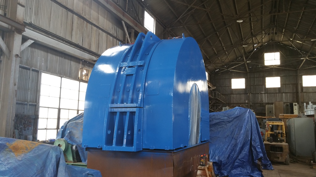 12ft Hoist, ASEA Single Drum Hoist, 12ft x 6.5ft Mine Hoist, Type HTDE-144 INCH, Serial # 329, ASEA 2,100 / 4,080 kW, 1000 VDC Drive Hoist Motor, 65,000lbs Line Pull, variable speed up to 2,000 fpm, Direct Drive, 3,000 Foot Depth, 1.75'' rope diameter, 66,000 lbs maximum static rope stress, Disk Brakes with four brake stands one disc on each side of drum Hagglund 408 calipers 3 per stand, Includes all related electrical and mechanical equipment, includes a ASEA Motor LH 2207, No 64991438, DC Motor 2,100 Cont., 4,080 kW momentary, 53 rpm rated, 47 rpm momentary, YOM 1974, includes GE Transformer, Dry type, No 281710, En. 57399, 750 KVA 80C.AN, 3 phase, 60 cycles, 4160-600Y/346 volts, Low Voltage 600Y 346 volts, 722 amps, 5.6 % @ 75oC Impedance