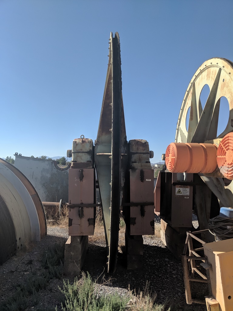 Motors: 2 Each GE, 1,500 Hp, 500/580 RPM, 500 Volt, Shunt Wound DC motors, Armature Amps: 2,370, Field Amps: 31.2, Field Ohms 5.2, Driving on fixed “inboard” side of hoist.