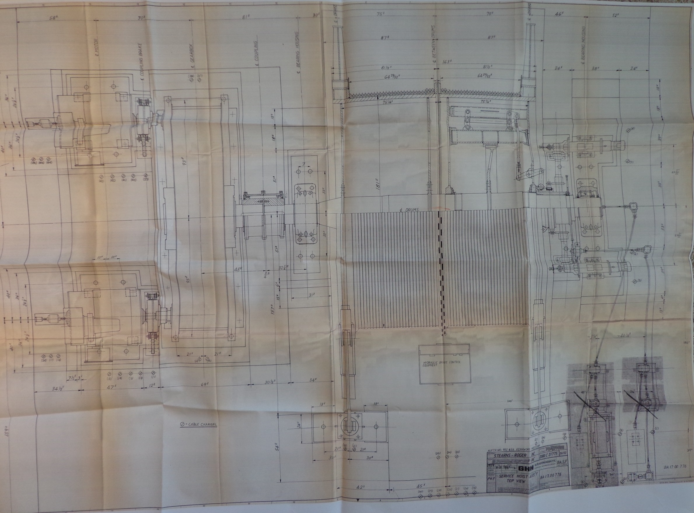 15ft Hoist, Double Drum GHH Mine Hoist, 110,000lbs line pull, 2,000 ft per min, 5,000ft depth, Single Clutch Double Drum, 5,000hp