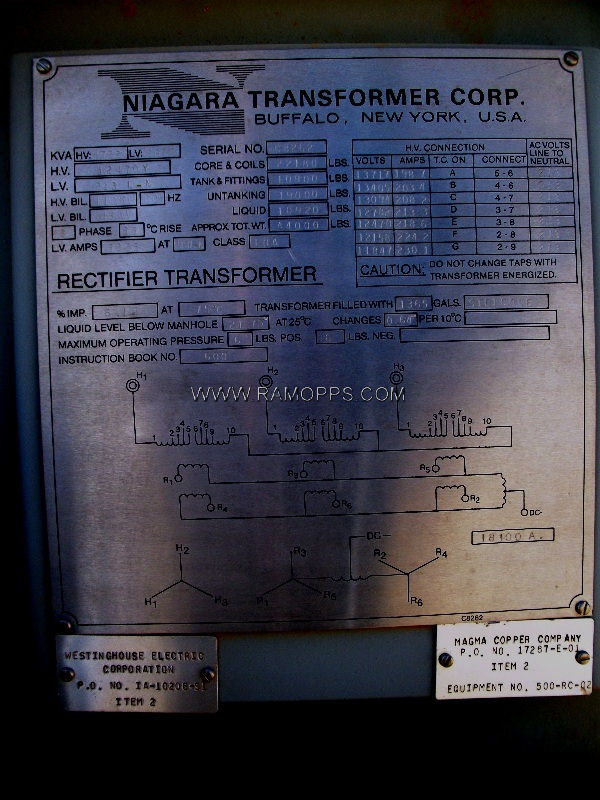 4,722 KVA Rectifier Transformer, Niagara, 4,722kva Rectifier Transformer, KVA: 4722 HV, 6678LV, HV 12470 Y, LV 213 L - N, Serial # C8262.