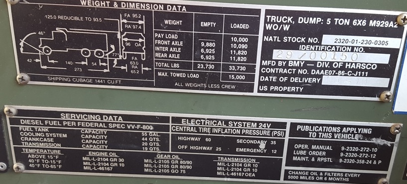 1990 M929A2 Dump Trucks, BMY Harsco, VIN 2900150 & 2900196, 6x6 Dump Trucks,Military dump truck, 15723 miles, engine hours 626, Cummins 6CTA 8.3 diesel engine and Allison automatic transmission, Power Steering, Air Brakes, Super Singles Tires, unit may need to be jump started, it includes a NEW spare tire, everything else is in excellent condition, one unit is a soft top the other unit is a hard top.